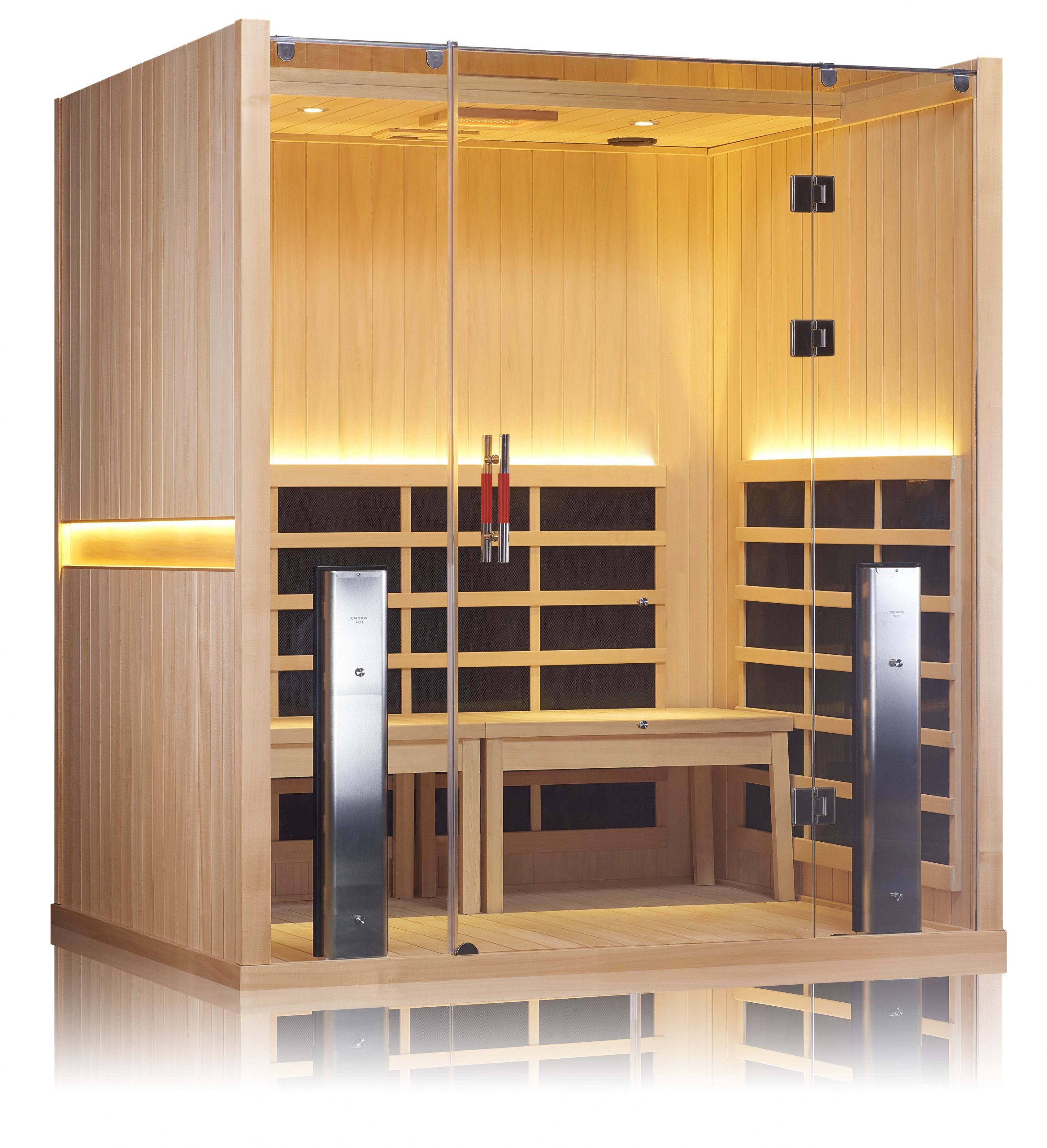 True Wave™ far infrared heaters on back wall, side walls, under the bench, next to your calves and in the floor.